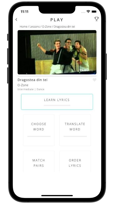 In addition to reading lyric translations, you can now learn Romanian with music and lyrics from your favorite artists.