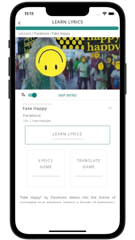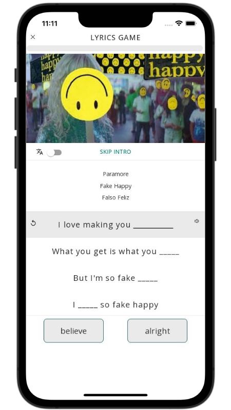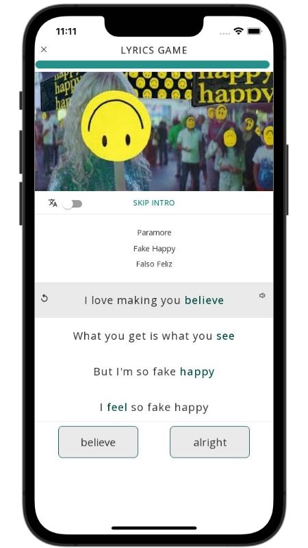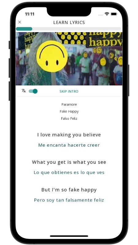 In addition to reading lyric translations, you can now learn English with music and lyrics from your favorite artists.