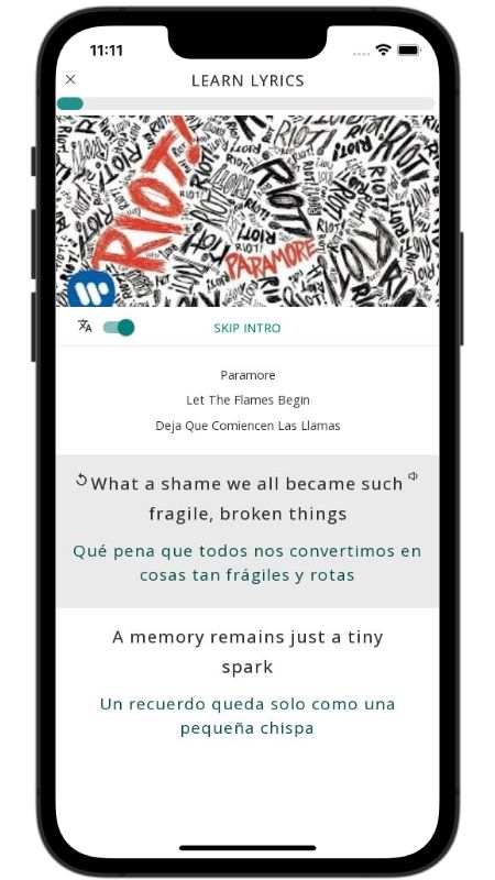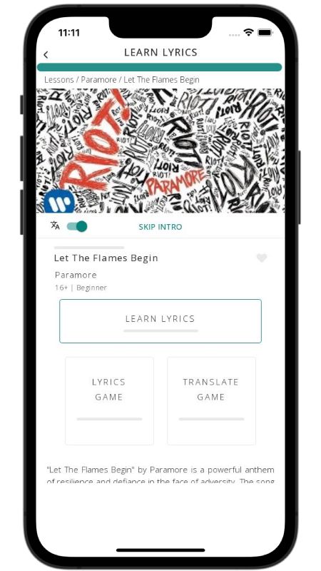 In addition to reading lyric translations, you can now learn English with music and lyrics from your favorite artists.