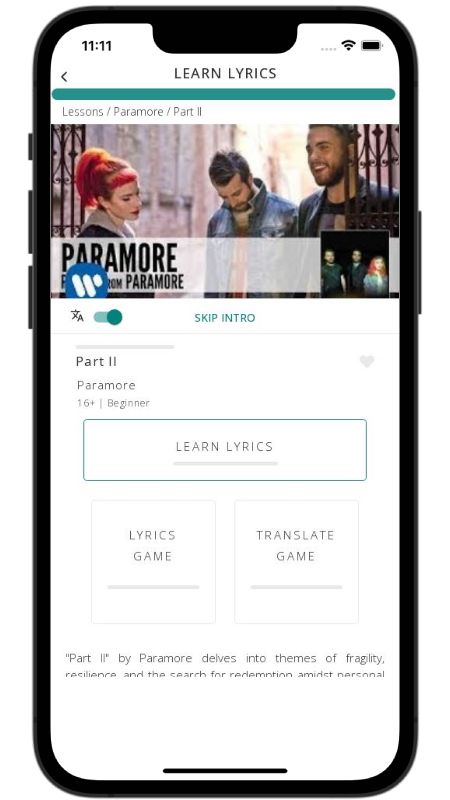 In addition to reading lyric translations, you can now learn English with music and lyrics from your favorite artists.