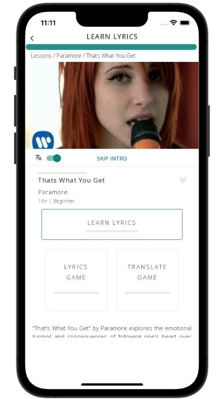 In addition to reading lyric translations, you can now learn English with music and lyrics from your favorite artists.