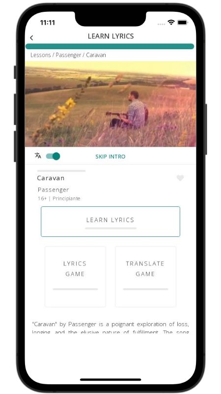 In addition to reading lyric translations, you can now learn English with music and lyrics from your favorite artists.