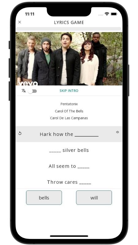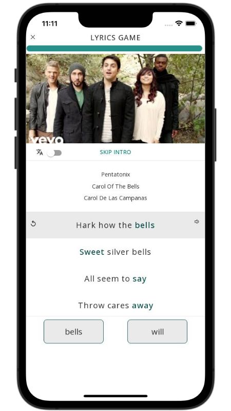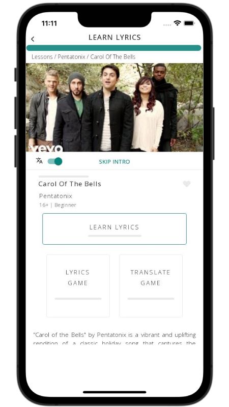 In addition to reading lyric translations, you can now learn English with music and lyrics from your favorite artists.
