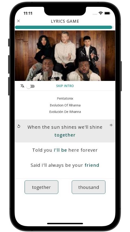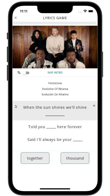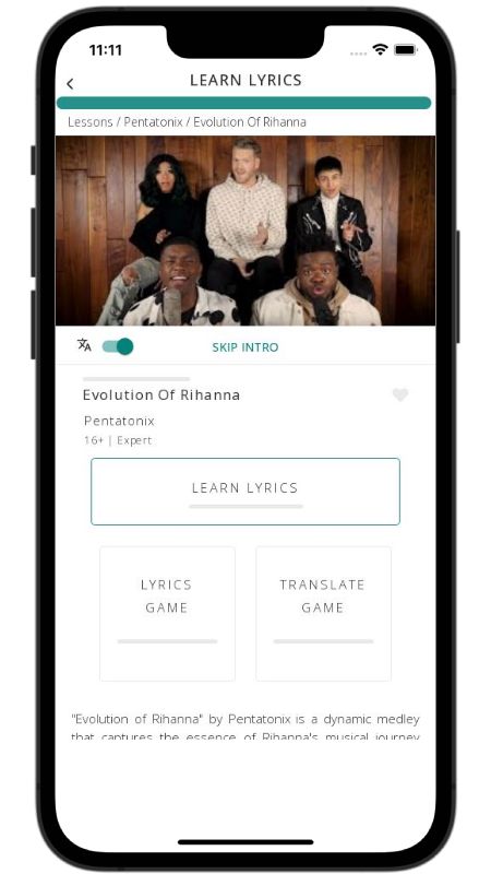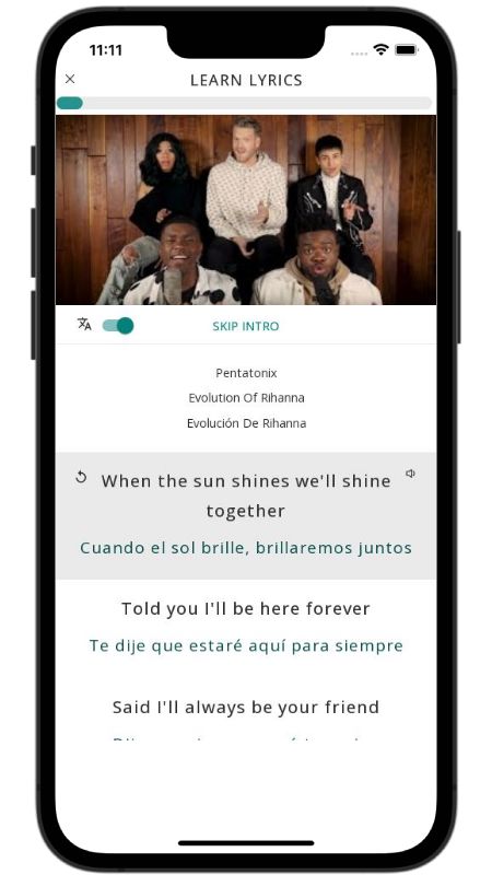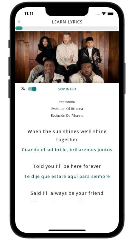 In addition to reading lyric translations, you can now learn English with music and lyrics from your favorite artists.