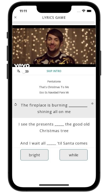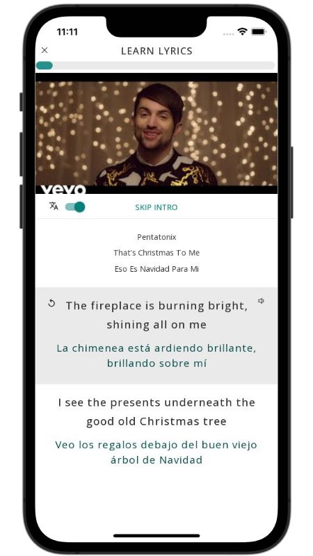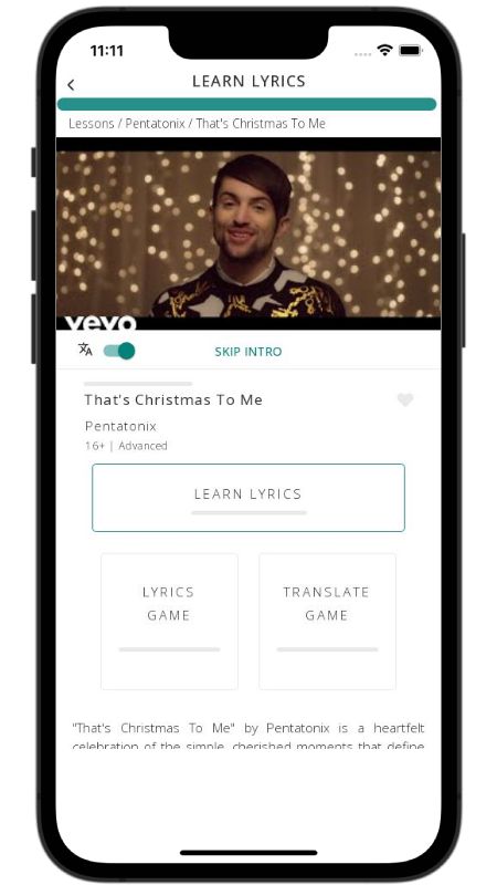 In addition to reading lyric translations, you can now learn English with music and lyrics from your favorite artists.