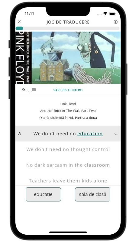 Below, I translated the lyrics of the song Another Brick In The Wall, Part Two by Pink Floyd from English to Romanian.