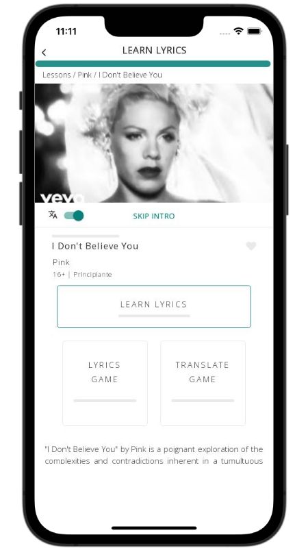 In addition to reading lyric translations, you can now learn English with music and lyrics from your favorite artists.