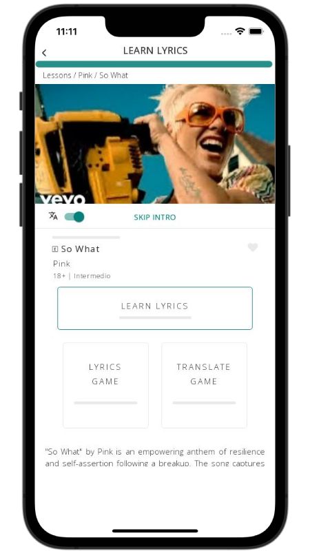 In addition to reading lyric translations, you can now learn English with music and lyrics from your favorite artists.