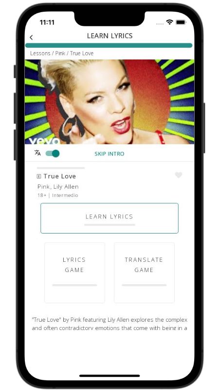 In addition to reading lyric translations, you can now learn English with music and lyrics from your favorite artists.