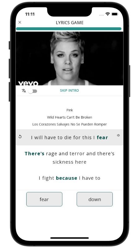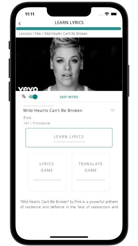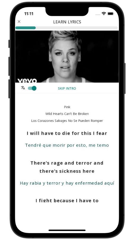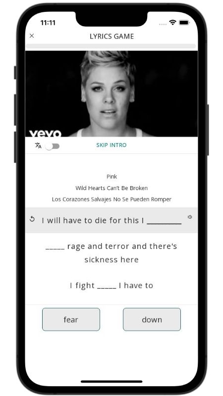 In addition to reading lyric translations, you can now learn English with music and lyrics from your favorite artists.