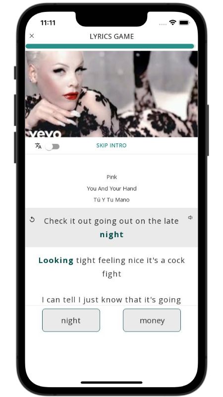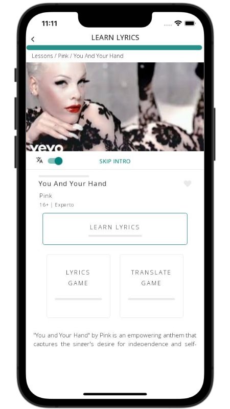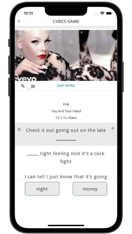 In addition to reading lyric translations, you can now learn English with music and lyrics from your favorite artists.