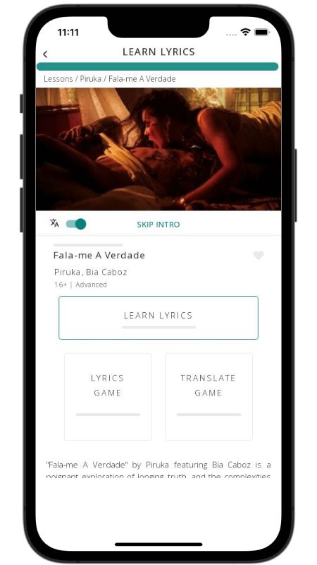 In addition to reading lyric translations, you can now learn Portuguese with music and lyrics from your favorite artists.