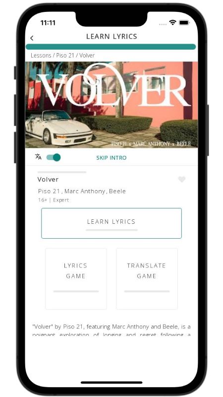 In addition to reading lyric translations, you can now learn Spanish with music and lyrics from your favorite artists.