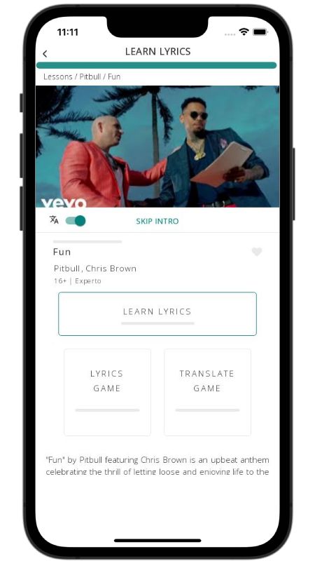 In addition to reading lyric translations, you can now learn English with music and lyrics from your favorite artists.