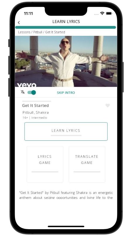 In addition to reading lyric translations, you can now learn English with music and lyrics from your favorite artists.