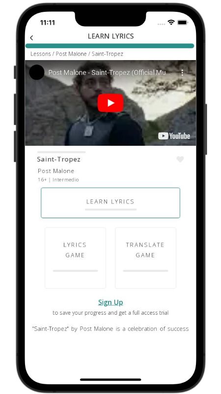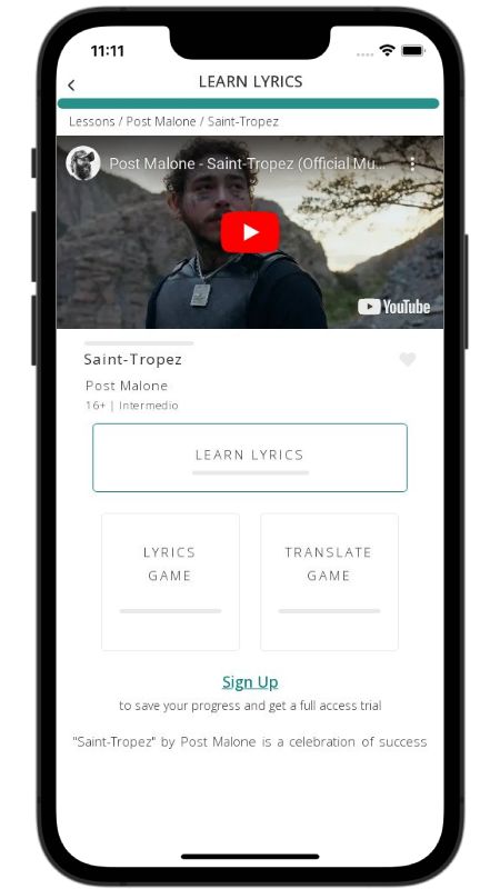 In addition to reading lyric translations, you can now learn English with music and lyrics from your favorite artists.