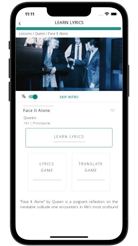 In addition to reading lyric translations, you can now learn English with music and lyrics from your favorite artists.