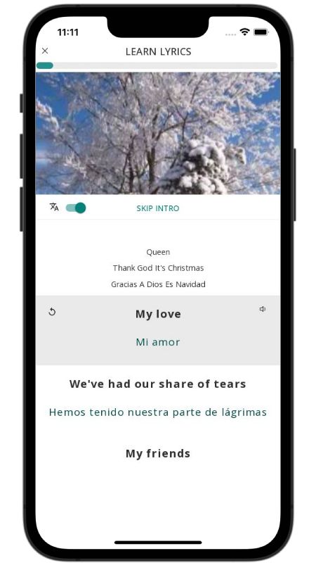 In addition to reading lyric translations, you can now learn English with music and lyrics from your favorite artists.