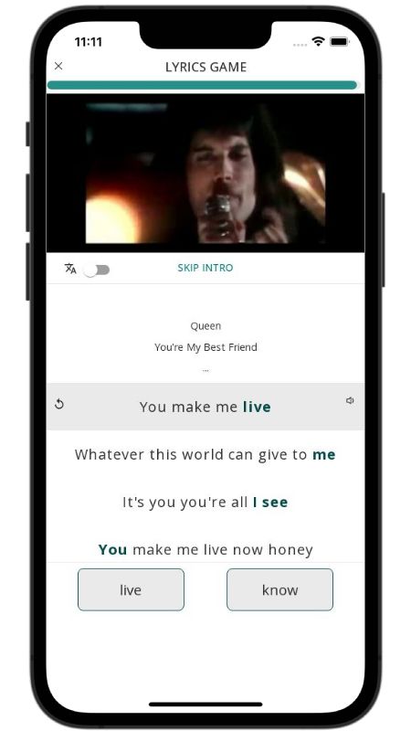 In addition to reading lyric translations, you can now learn English with music and lyrics from your favorite artists.