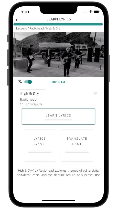 In addition to reading lyric translations, you can now learn English with music and lyrics from your favorite artists.
