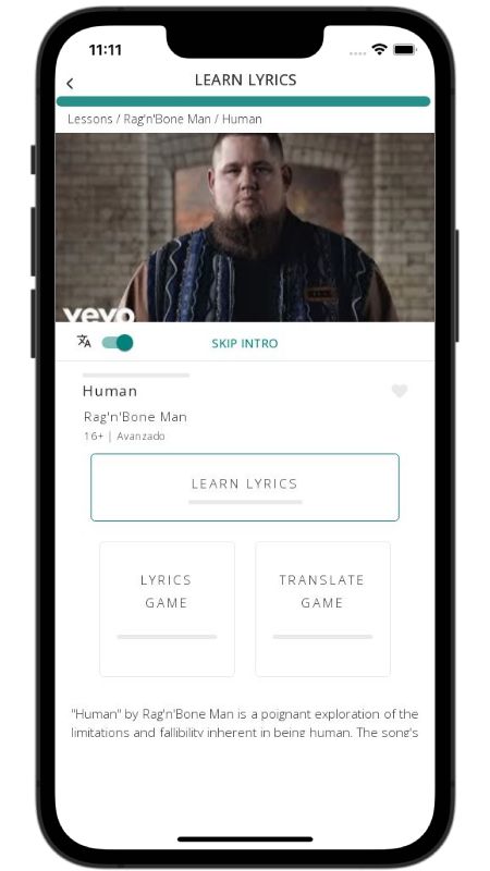 In addition to reading lyric translations, you can now learn English with music and lyrics from your favorite artists.
