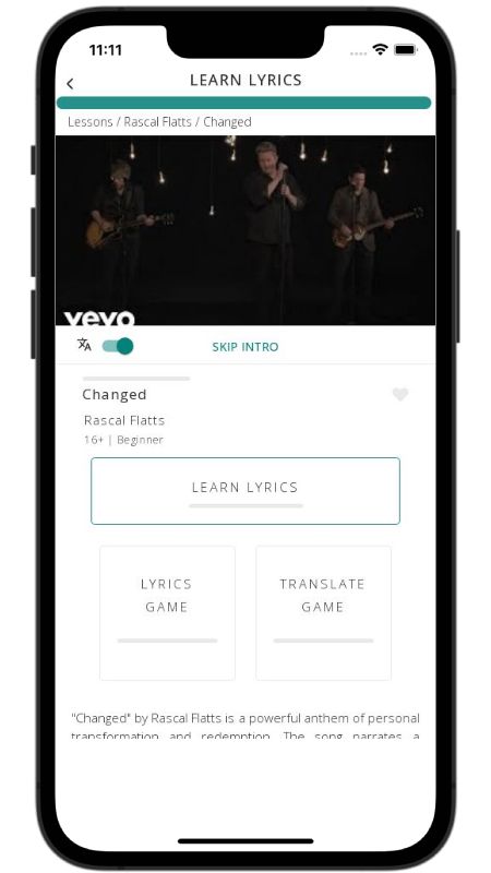 In addition to reading lyric translations, you can now learn English with music and lyrics from your favorite artists.