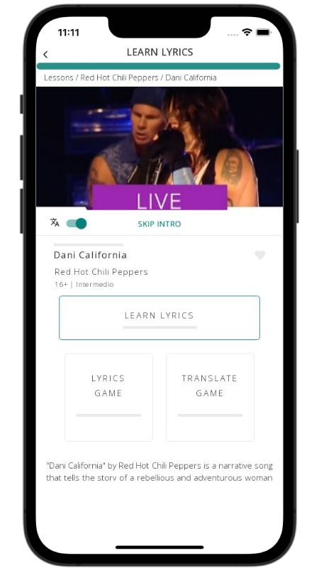 In addition to reading lyric translations, you can now learn English with music and lyrics from your favorite artists.
