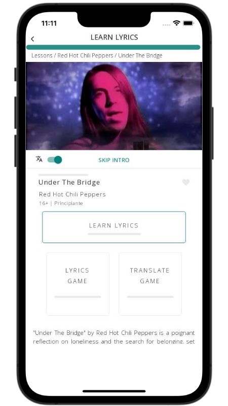 In addition to reading lyric translations, you can now learn English with music and lyrics from your favorite artists.
