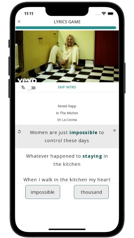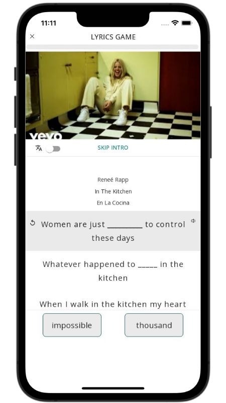 In addition to reading lyric translations, you can now learn English with music and lyrics from your favorite artists.
