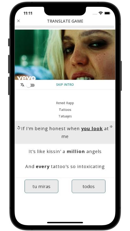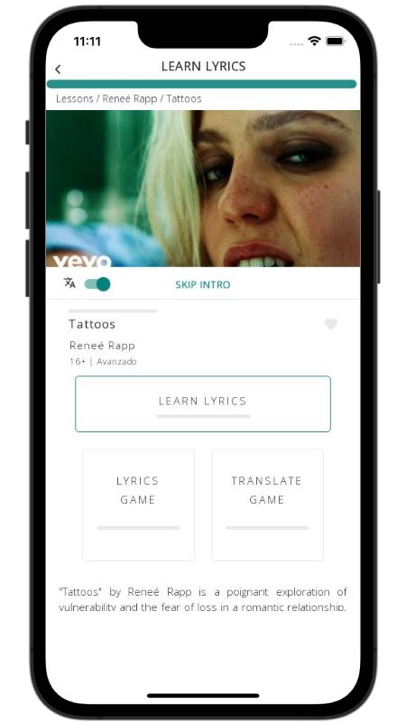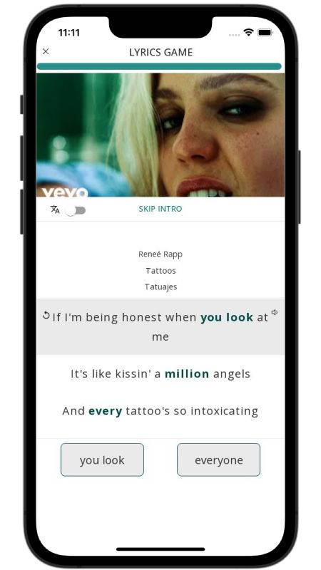 In addition to reading lyric translations, you can now learn English with music and lyrics from your favorite artists.