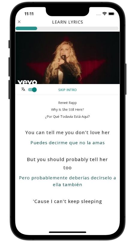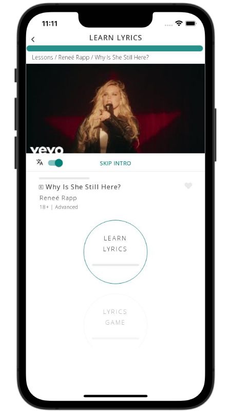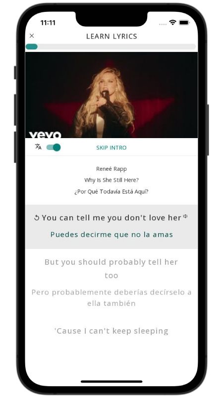 In addition to reading lyric translations, you can now learn English with music and lyrics from your favorite artists.