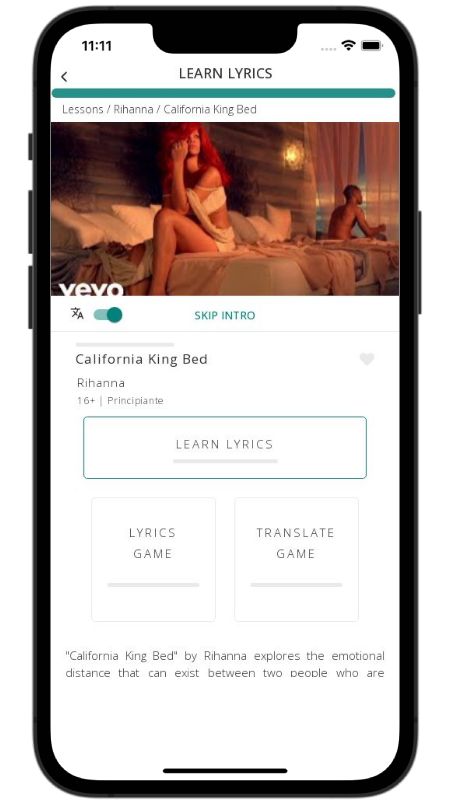 In addition to reading lyric translations, you can now learn English with music and lyrics from your favorite artists.