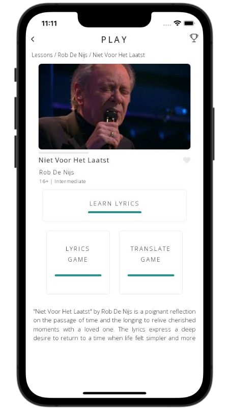In addition to reading lyric translations, you can now learn Dutch with music and lyrics from your favorite artists.