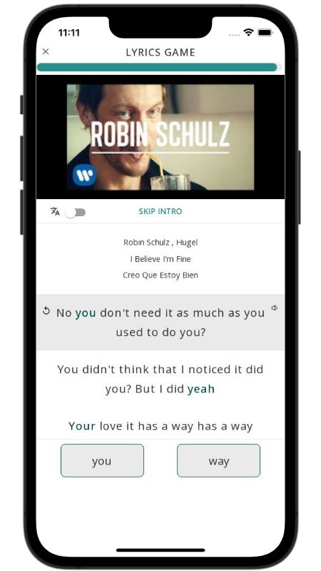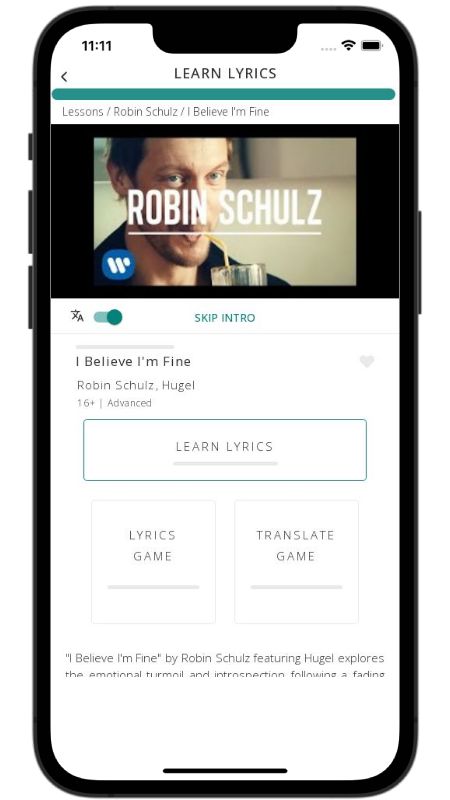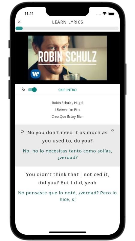 In addition to reading lyric translations, you can now learn English with music and lyrics from your favorite artists.
