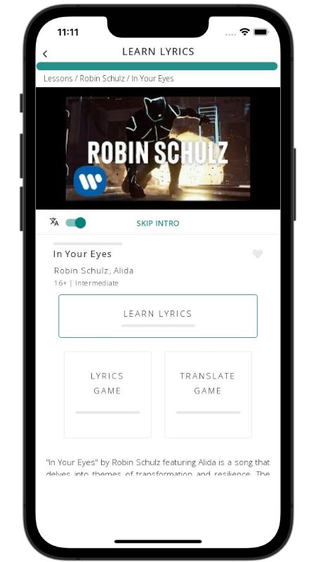 In addition to reading lyric translations, you can now learn English with music and lyrics from your favorite artists.