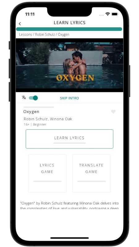 In addition to reading lyric translations, you can now learn English with music and lyrics from your favorite artists.