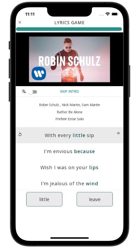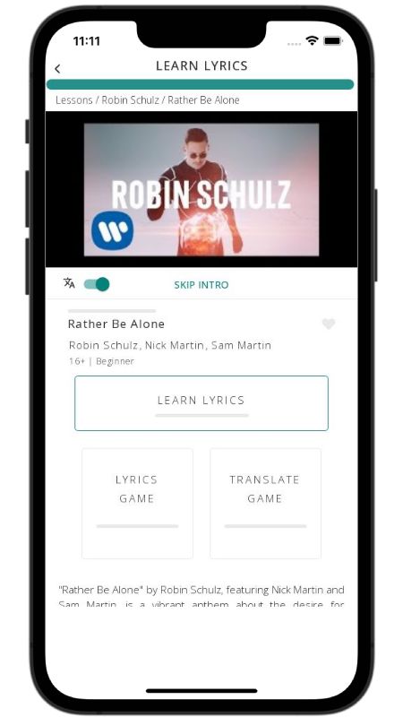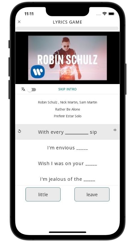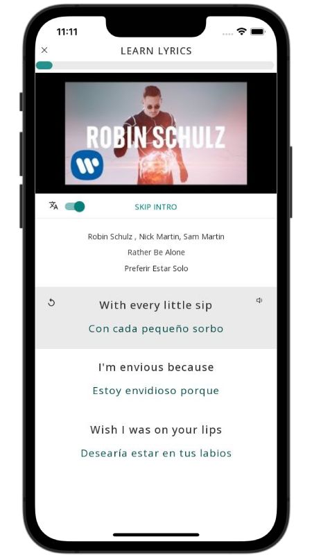 In addition to reading lyric translations, you can now learn English with music and lyrics from your favorite artists.