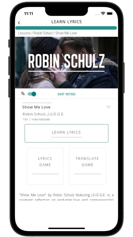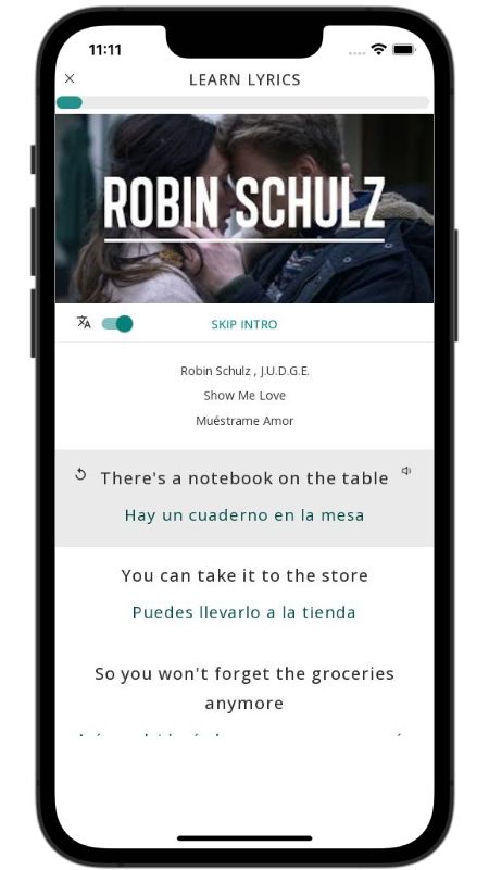 In addition to reading lyric translations, you can now learn English with music and lyrics from your favorite artists.