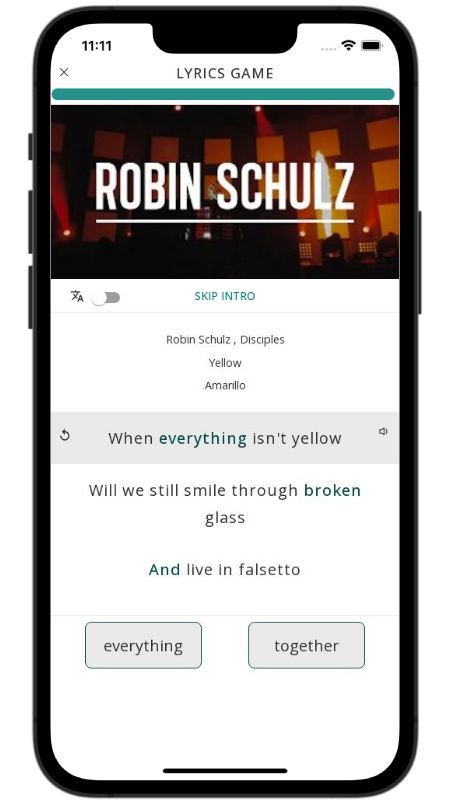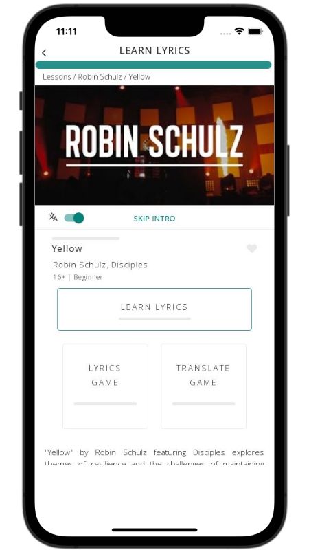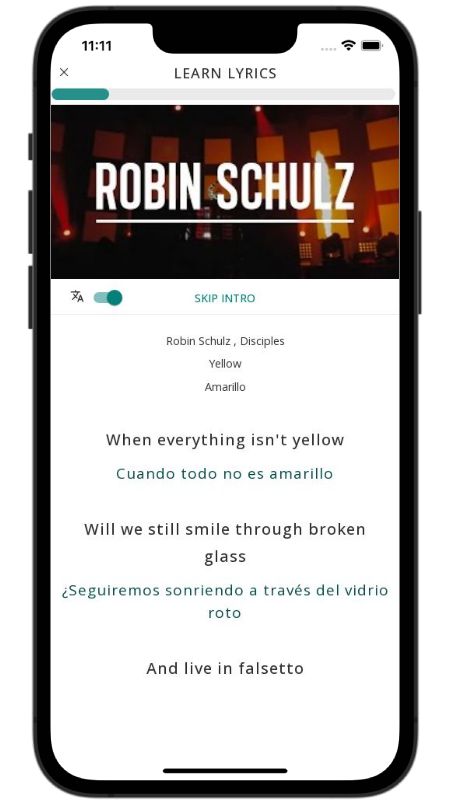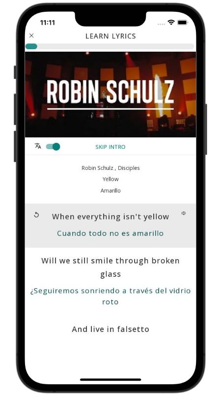 In addition to reading lyric translations, you can now learn English with music and lyrics from your favorite artists.