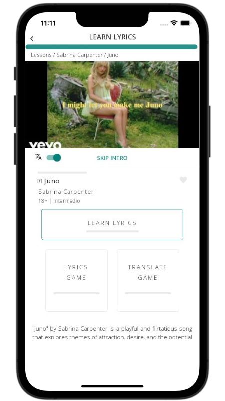 In addition to reading lyric translations, you can now learn English with music and lyrics from your favorite artists.