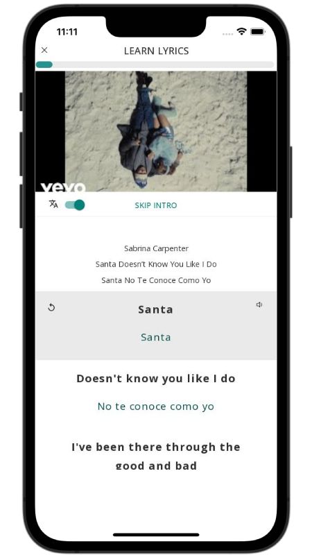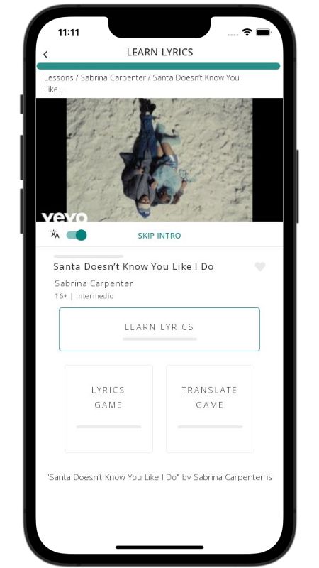 In addition to reading lyric translations, you can now learn English with music and lyrics from your favorite artists.