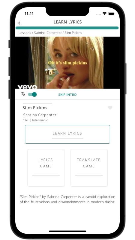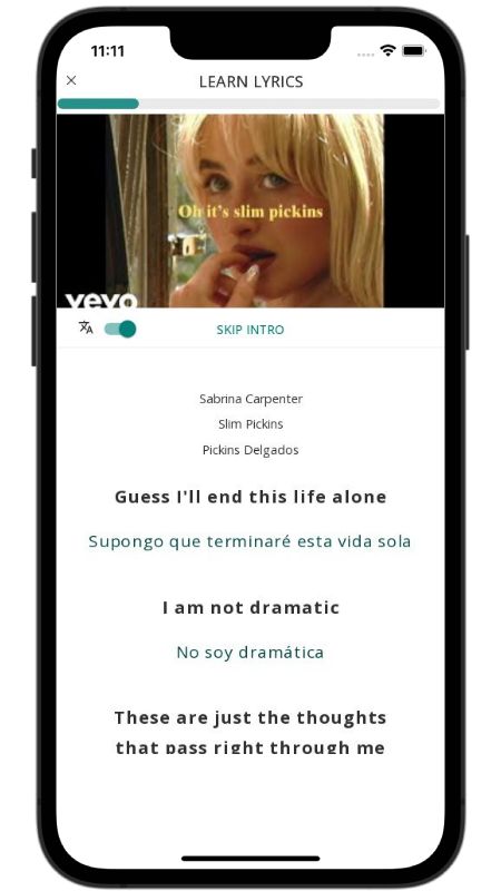 In addition to reading lyric translations, you can now learn English with music and lyrics from your favorite artists.