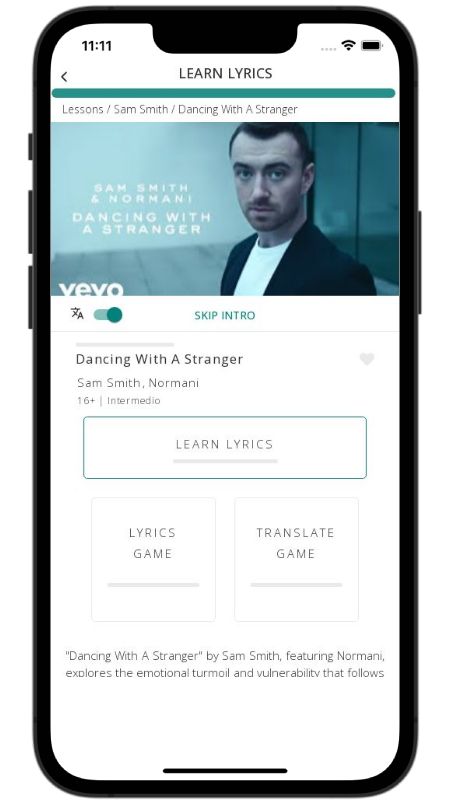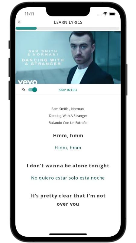 In addition to reading lyric translations, you can now learn English with music and lyrics from your favorite artists.