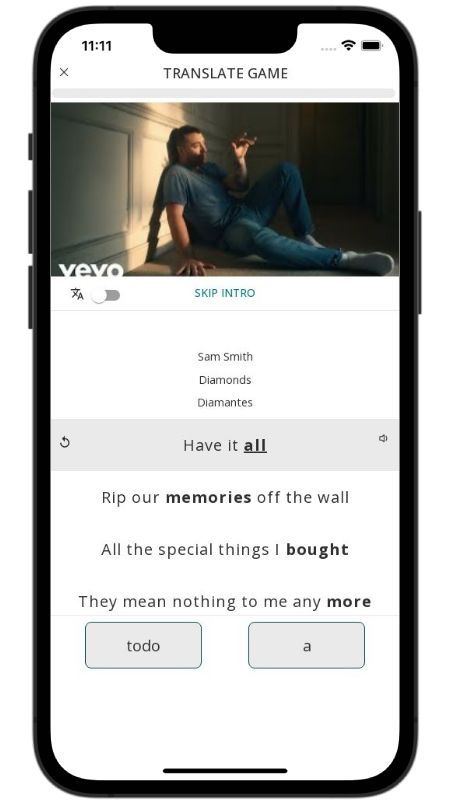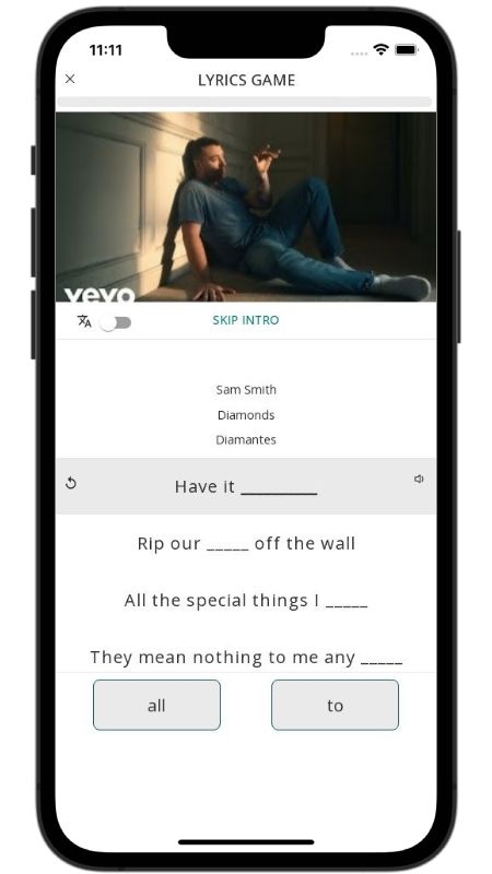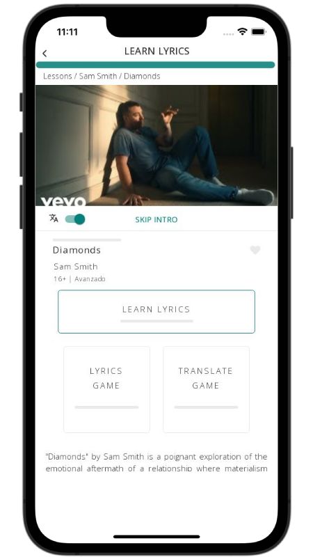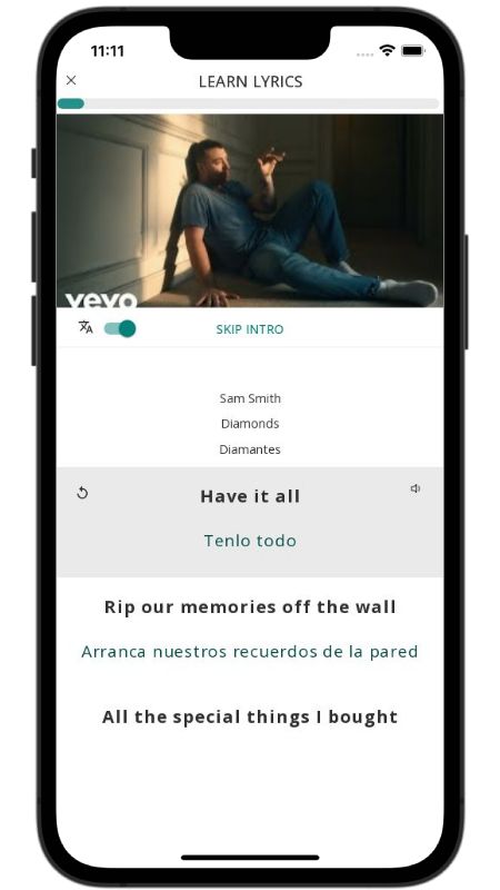 In addition to reading lyric translations, you can now learn English with music and lyrics from your favorite artists.