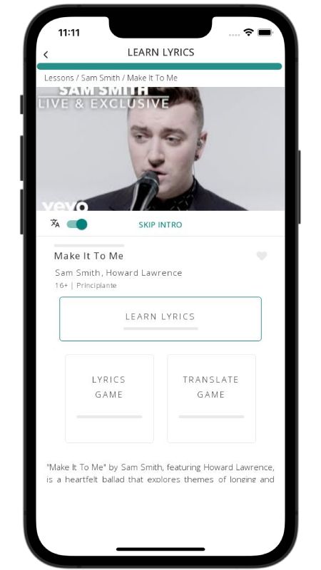 In addition to reading lyric translations, you can now learn English with music and lyrics from your favorite artists.