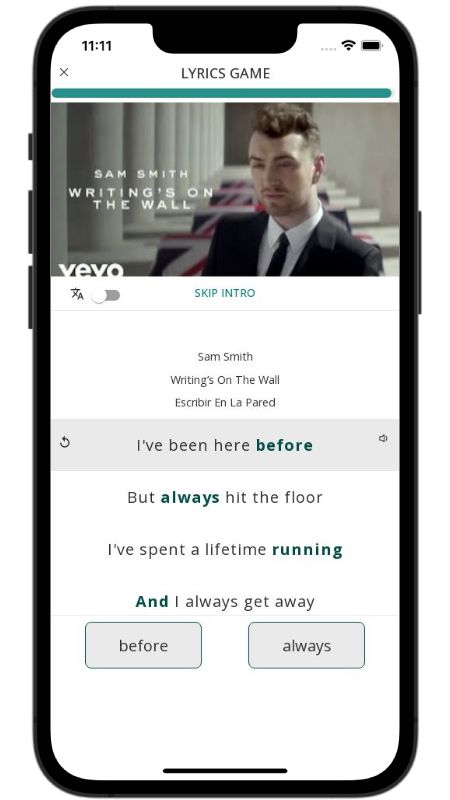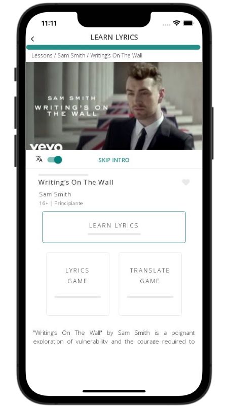In addition to reading lyric translations, you can now learn English with music and lyrics from your favorite artists.