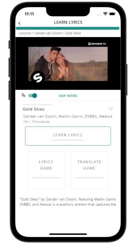 In addition to reading lyric translations, you can now learn English with music and lyrics from your favorite artists.