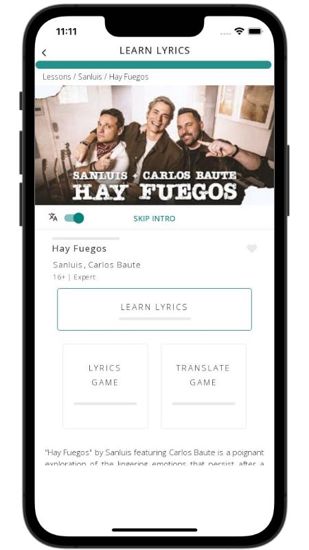 In addition to reading lyric translations, you can now learn Spanish with music and lyrics from your favorite artists.
