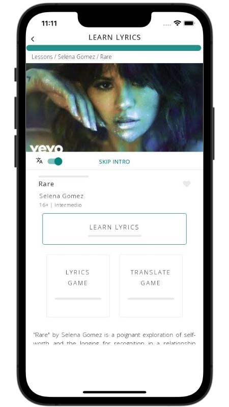 In addition to reading lyric translations, you can now learn English with music and lyrics from your favorite artists.