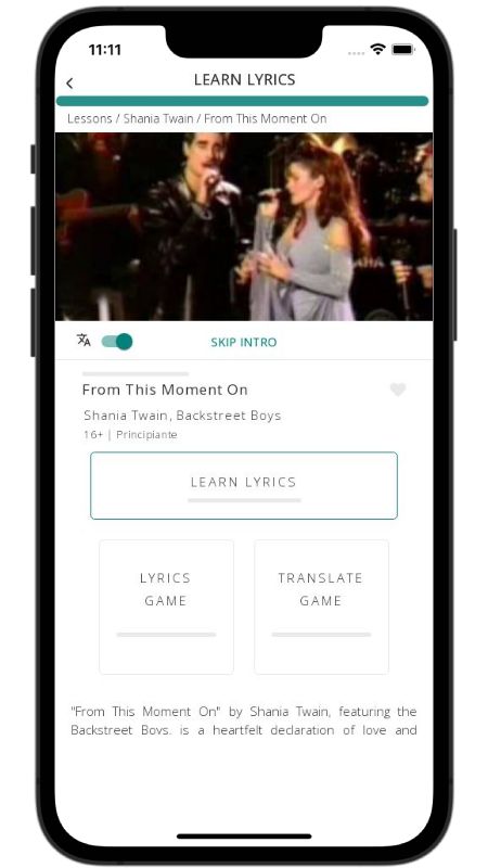 In addition to reading lyric translations, you can now learn English with music and lyrics from your favorite artists.